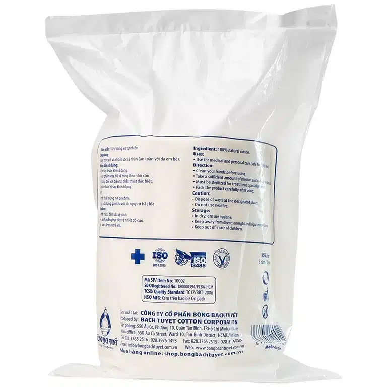 Bông y tế Bạch Tuyết 500g là sản phẩm hoàn toàn tự nhiên, được làm từ 100% bông xơ tự nhiên mà không pha trộn với sợi Polyester, đảm bảo an toàn cho da nhạy cảm. Sản phẩm được chế tạo với công nghệ Spunlace hiện đại, mang đến độ mềm mại, mịn màng và đàn hồi tốt, giúp loại bỏ tới 99% xơ thừa trên bề mặt và tối ưu hóa khả năng thấm hút.