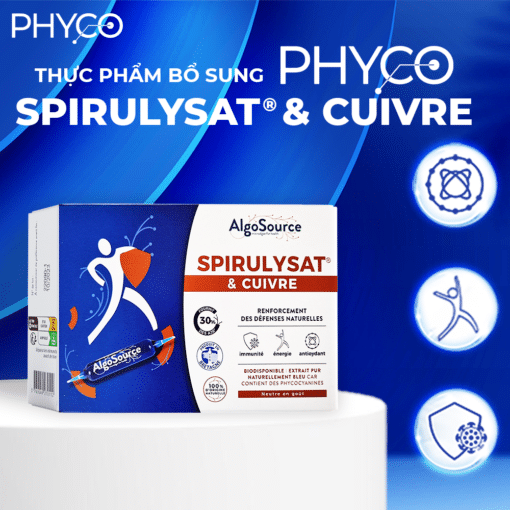Thực phẩm bổ sung Phyco Spirulysat Cuivre là chất có khả năng hỗ trợ chống viêm tốt đối với cơ thể bằng cách ức chế Enzym COX-2 là 1 trong các Enzym đóng vai trò quan trọng trong các phản ứng gây viêm và đau mãn tính, dẫn đến thoái hoá và thúc đẩy lão hoá sớm.