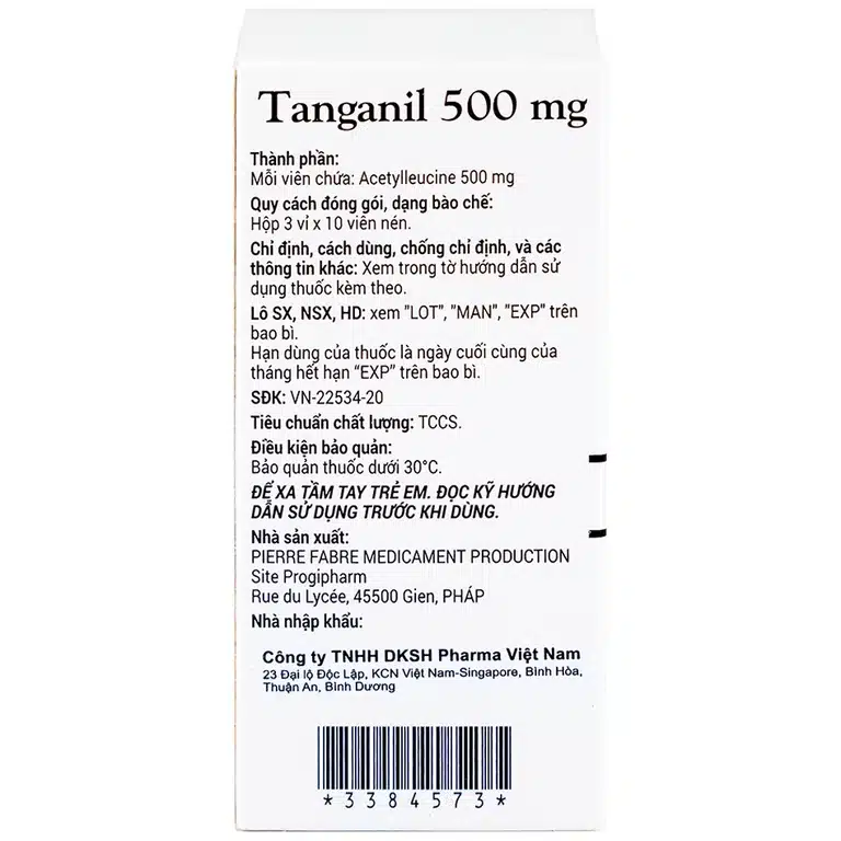 Thuốc Tanganil 500mg là sản phẩm của hãng dược phẩm Pierre Fabre (Pháp), được sử dụng phổ biến trong điều trị các cơn chóng mặt và rối loạn tiền đình. Với hoạt chất chính là Acetylleucine, Tanganil 500mg giúp làm giảm nhanh các triệu chứng hoa mắt, đau đầu, mất cân bằng, từ đó cải thiện chất lượng cuộc sống cho người bệnh.